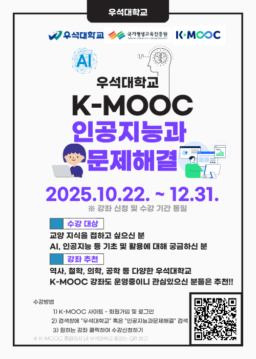 - 우석대학교 2025년 2학기 K-MOOC 강좌 수강 안내(2차)