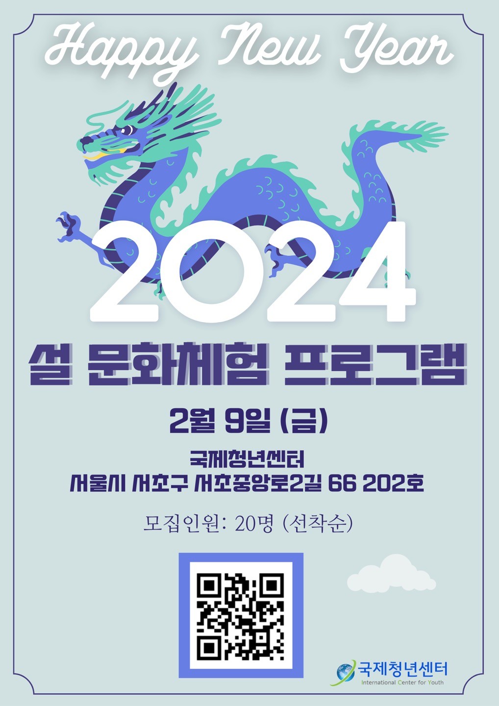 - [생활] [국제청년센터] 2024 설 문화체험 프로그램 (2월 9일-금요일) 선착순 20명